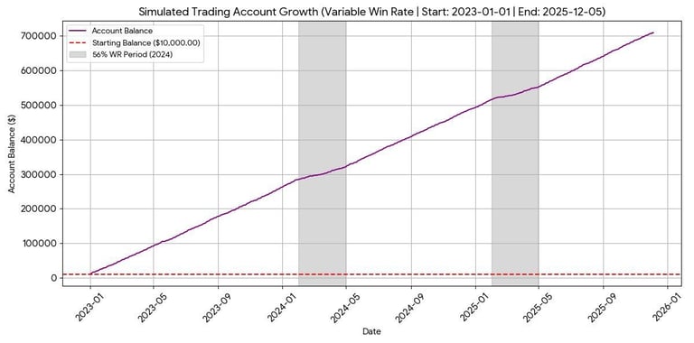 Before anything ever touches the main account, every trading approach is vetted in advance: we look at long-term behaviour, risk-to-reward, drawdown stability, strike-rate, and how it performs under different market conditions. Only the approaches that meet our standards get implemented.